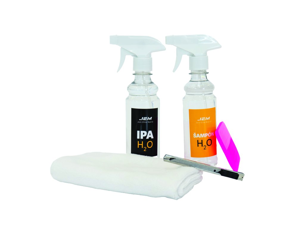 - Sprühen Sie leicht eine Lösung aus Shampoo und destilliertem Wasser sowohl auf das zu beklebende Teil als auch auf beide Seiten der PPF (destilliertes Wasser hinterlässt nach dem Trocknen keine Flecken). Für 500 ml Wasser geben Sie 2 - 2,5 ml Shampoo hinzu (bei höheren Temperaturen oder komplexen Teilen etwas mehr Shampoo).