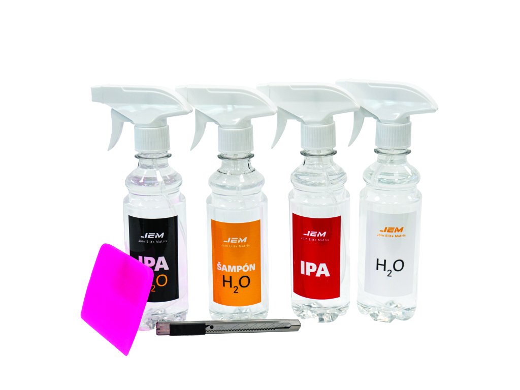 Komplettes Set zur Vorbereitung und Anwendung von schützender PPF-Folie, ideal für Anwendungen an Innen- und Außenbereichen von Fahrzeugen. Dieses Set enthält alle notwendigen Flüssigkeiten und Werkzeuge für eine fehlerfreie Verklebung der Folie, einschließlich Rakel und Messer für präzises Arbeiten. Das Set ist für Anwender vorbereitet, die hochwertige Ausrüstung für größere Projekte benötigen, einschließlich Anwendungen auf größeren Flächen.