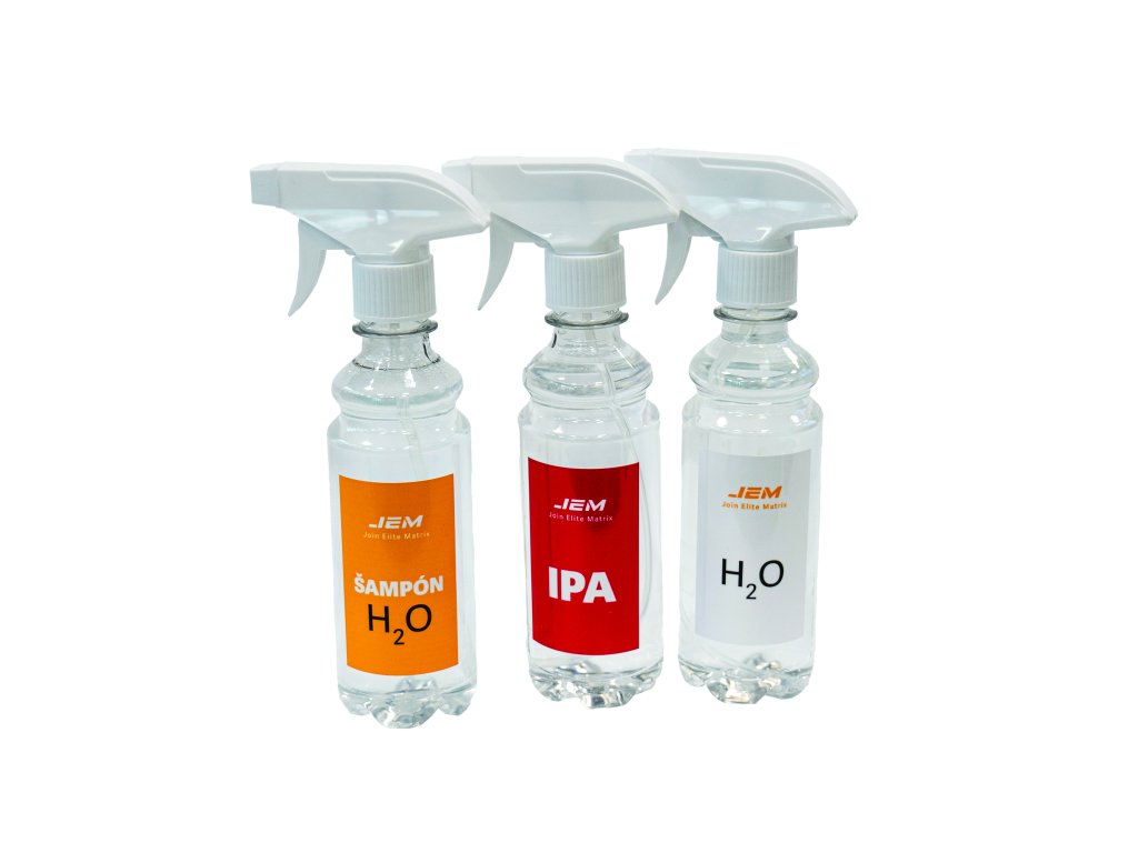 Basic set of three essential liquids for preparing and installing protective PPF film. The PPF Trio Set is ideal for those looking for clean, pre-mixed solutions without unnecessary additives. It contains isopropyl alcohol for degreasing, installation shampoo for easy bonding, and distilled water as a universal helper for dilution or direct application.
