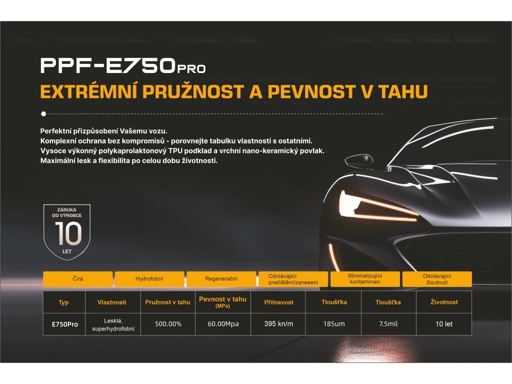 PPF fólia je vyrobená z vysokokvalitného termoplastického polyuretánu (TPU) s povrchovou úpravou scratchcontrol, ktorá jej dodáva výnimočné samoregeneračné vlastnosti. Poškriabaná fólia sa regeneruje pôsobením tepla (slnko, teplá voda, teplo z motora).